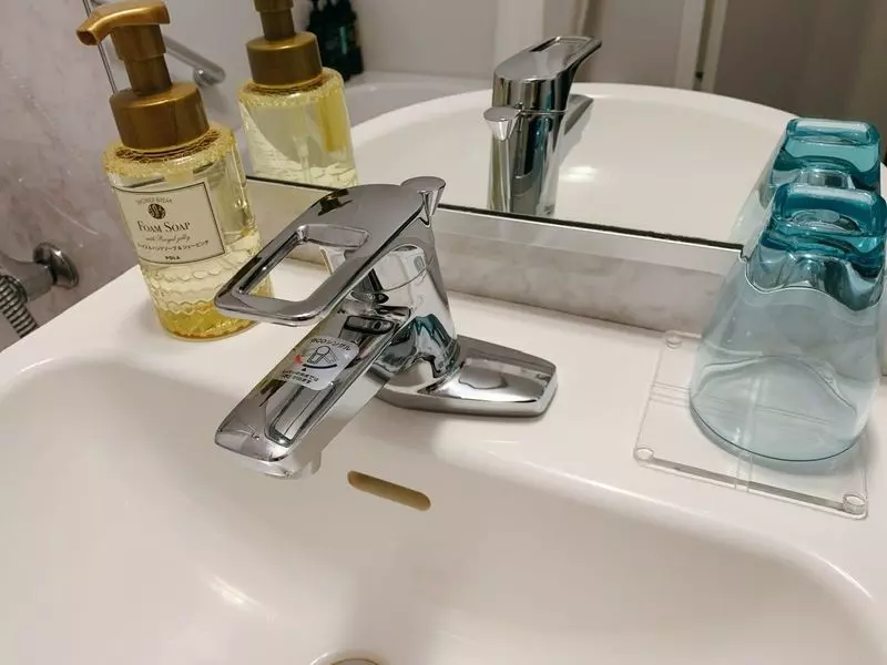 こちらは、シンプルで清潔感がある洗面台。身体全体が映るほどのワイドな鏡が設置され、朝のメイクの際にも便利でした◎