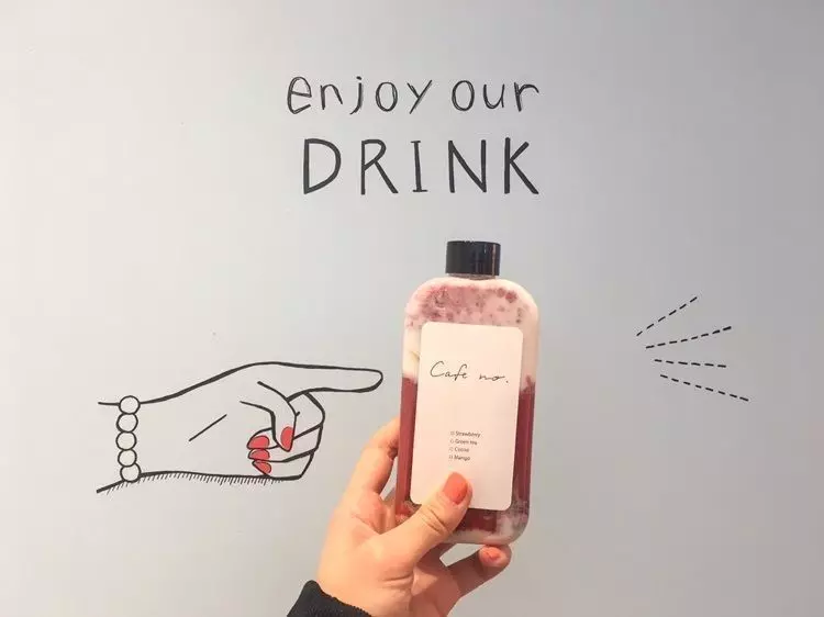 こちらは、大阪などで話題沸騰中の人気カフェ。その特徴はなんといってもコスメのような可愛いボトル!流行りのタピオカドリンクからラテまで種類も豊富なんです。また、壁側のあちこちでは、フォトジェニックな写真が撮影できるようにウォールアートが!是非写真を撮ってインスタ映えを♡