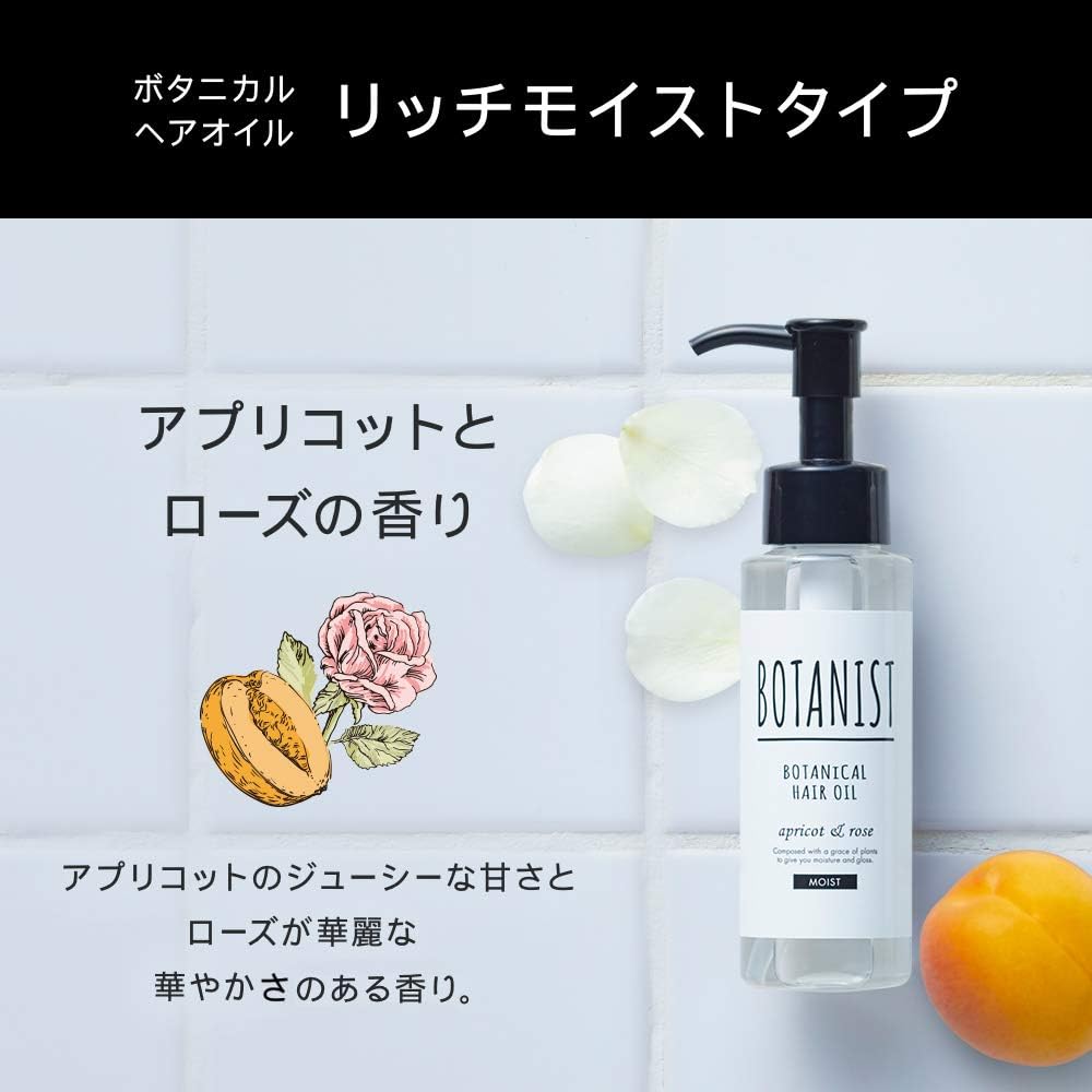 続いてご紹介する人気のヘアオイルは、BOTANIST(ボタニスト)の「ボタニカルヘアオイル リッチモイスト」。とろみのある濃密な質感で髪の内側までしっとり潤いを与えてくれるヘアオイルです。