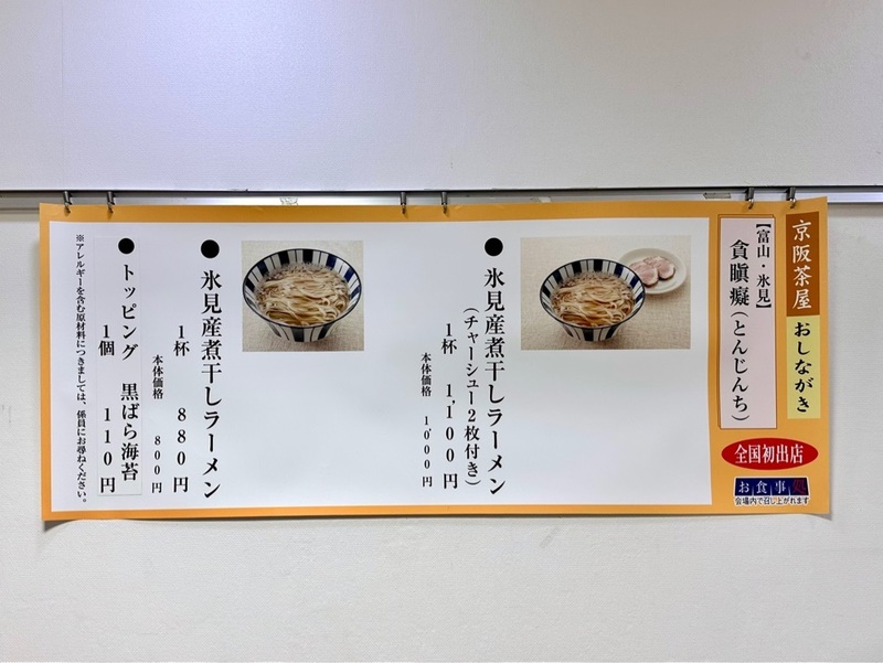 『氷見産煮干しラーメン』チャーシュー2枚付き 1100円 『黒ばら海苔』トッピング 110円