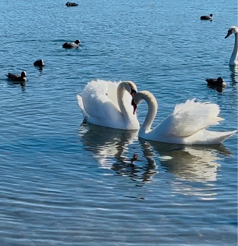 山中湖で白鳥を狙って撮りました!仲良し白鳥ハート型が撮りたいなと追いかけました何とかハート型らしき物が撮れました!#山中湖白鳥#はぎちゃんの日常