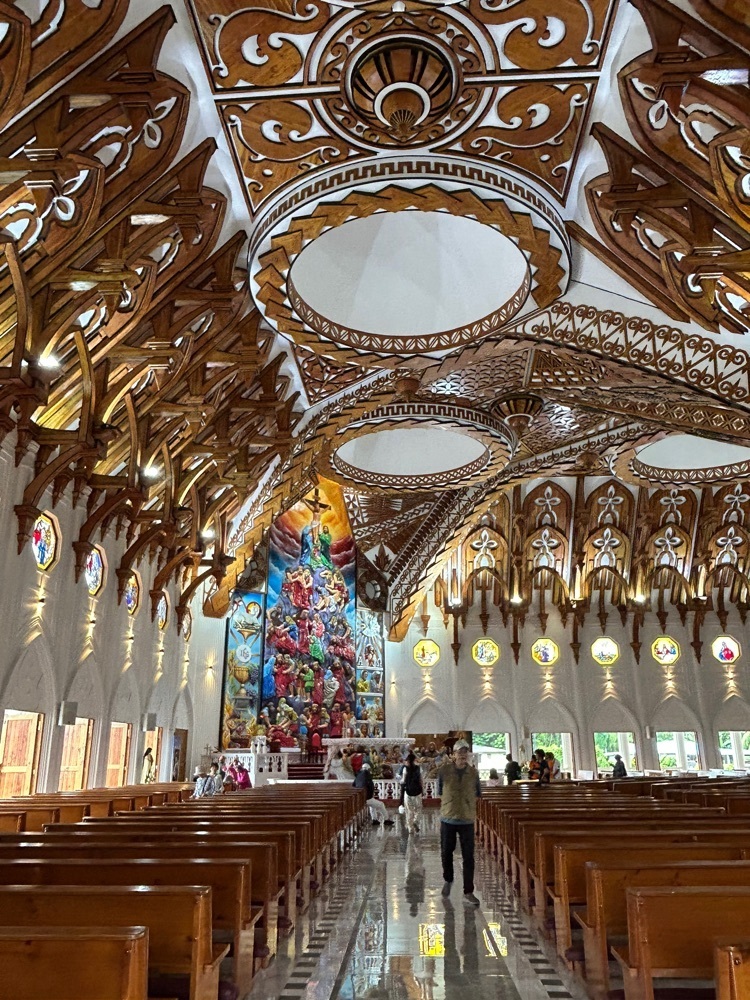 いままで色々な教会を見てきたが天井の木造彫刻がこれまでの中で初めて。