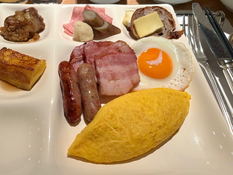 ホテルオークラ福岡の朝食は、1階のオールデイダイニング「カメリア」で提供されています。朝食ブッフェのメニューは、シェフが目の前で焼くオムレツや和惣菜、博多の郷土料理、ホテル特製のパンなど多彩に揃っています。また、フレンチトーストセットやパンケーキなどのアラカルトメニューも用意されています。