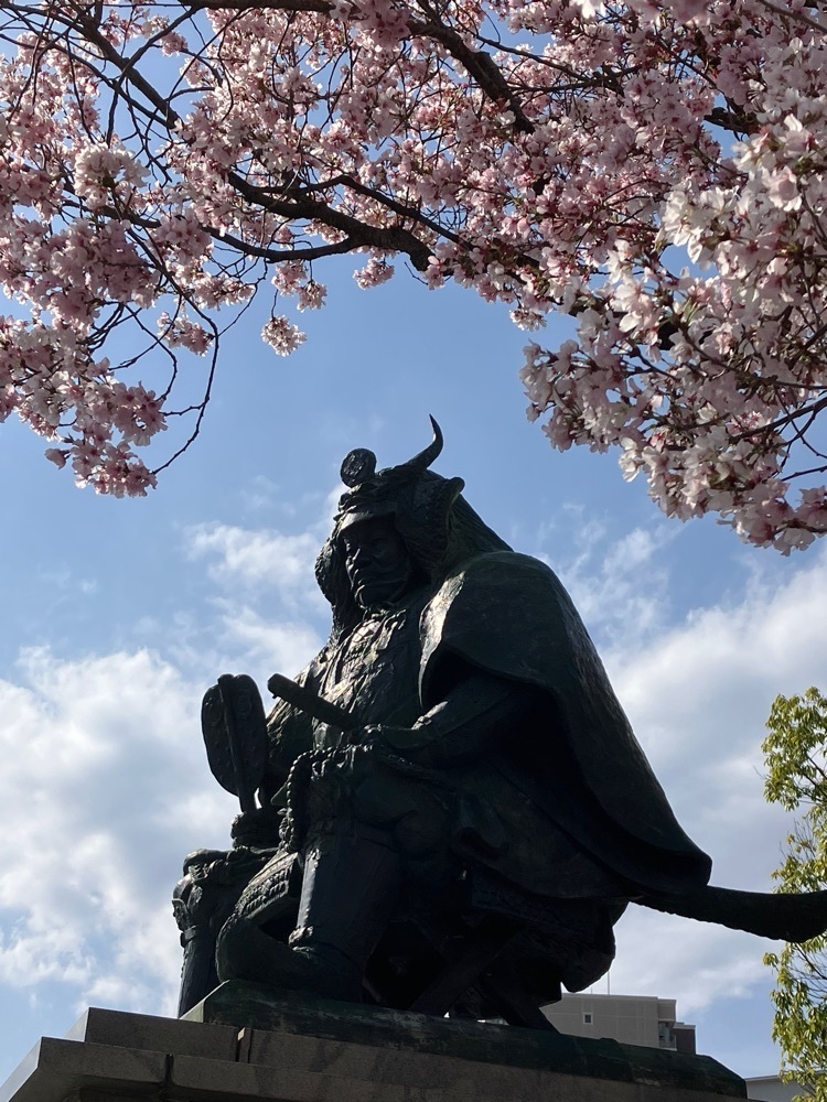 いつも、桜の咲く時期に撮りたくなる写真武田信玄公像と桜の花🌸信玄公には桜の花が似合うと思いますちょっと離れた場所ですが、信玄公とガンダムのマンホールのふたがありました正式な名称は「RX-78-2 ガンダムと武田信玄公銅像」らしいです