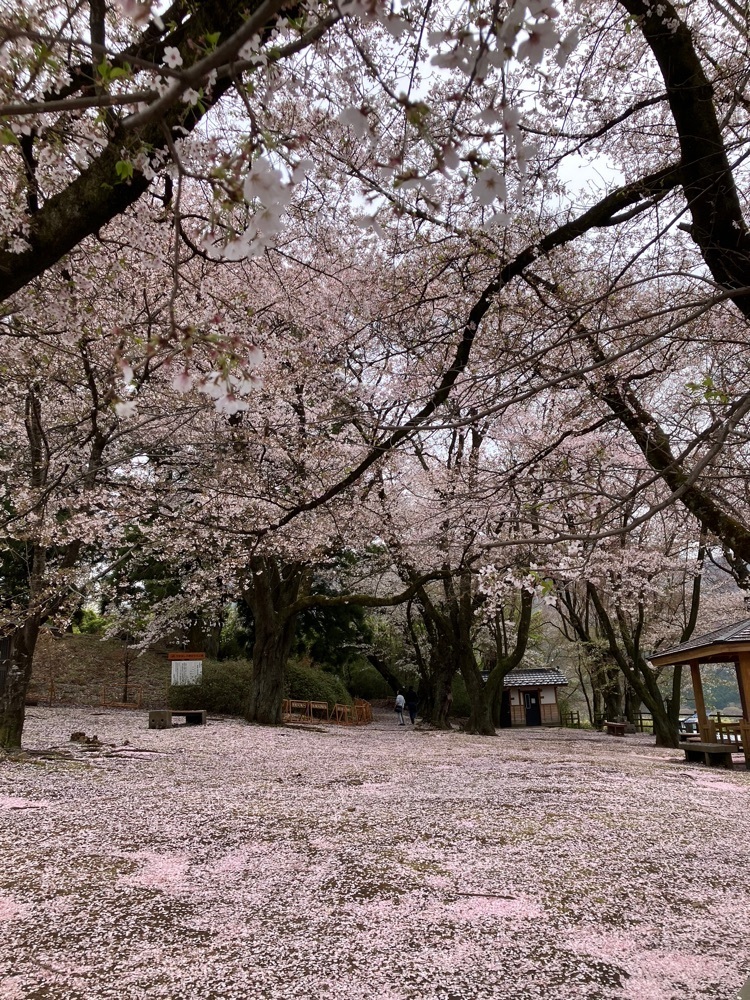 一本杉と桜が楽しめる場所隣りにはリニアの見える丘があって展望も良く、この時期は桜と桃の花が咲いています桜は見ごろを過ぎていましたが地面の桜の花びらも風情がありました