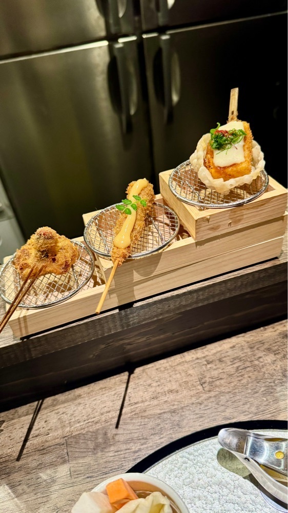 串揚げを15本頂きましたが、創作串揚げだけあって、珍しい串揚げもあって、めっちゃくまうまーでした🐻