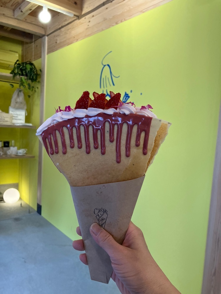 「クレープとエスプレッソと花小路」限定の商品、「いちごとフラワーメルト」をいただきました