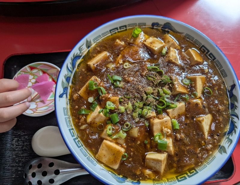 ここの麻婆ラーメンは四川風かな?花山椒がたっぷりかかって舌がビリビリする。