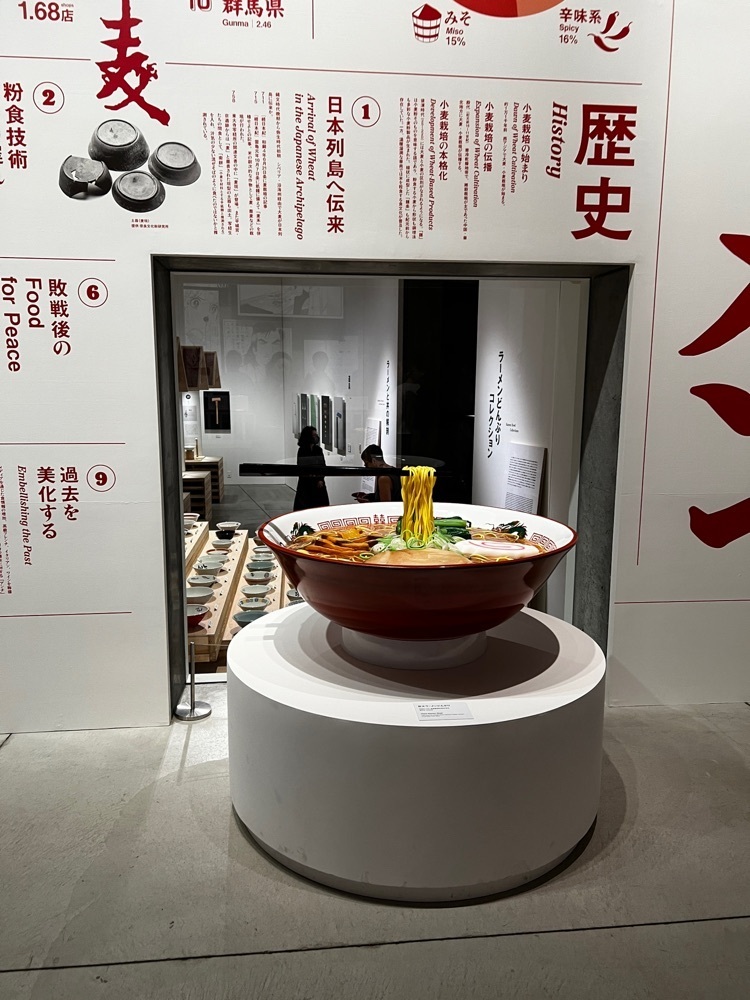有名なラーメン屋のどんぶりが見れたり、様々なデザイナーがデザインしたどんぶりが見れたりと、なかなか面白い展示でした。
