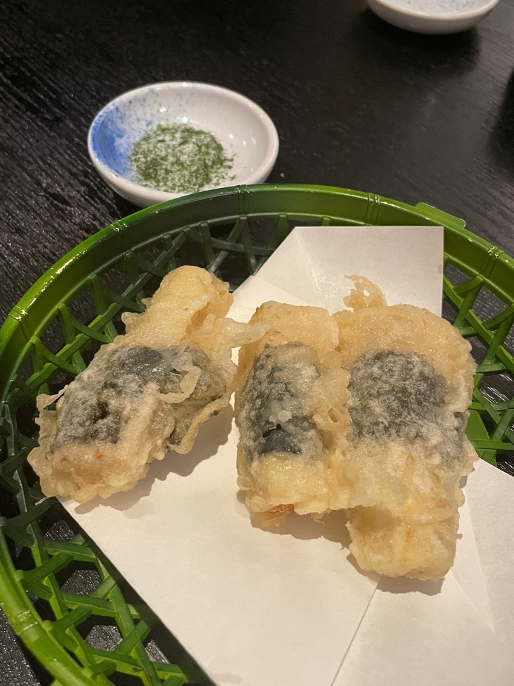 あおさたっぷりのだし巻き卵は甘口の味付けに磯の香りが更に食欲をそそりますし、筍の磯辺揚げも揚げたてサクサクの天ぷらをあおさ塩で頂くこちらも春らしい一品。やっぱお蕎麦屋さんのつまみってどれもめちゃくちゃポテンシャル高いですね。