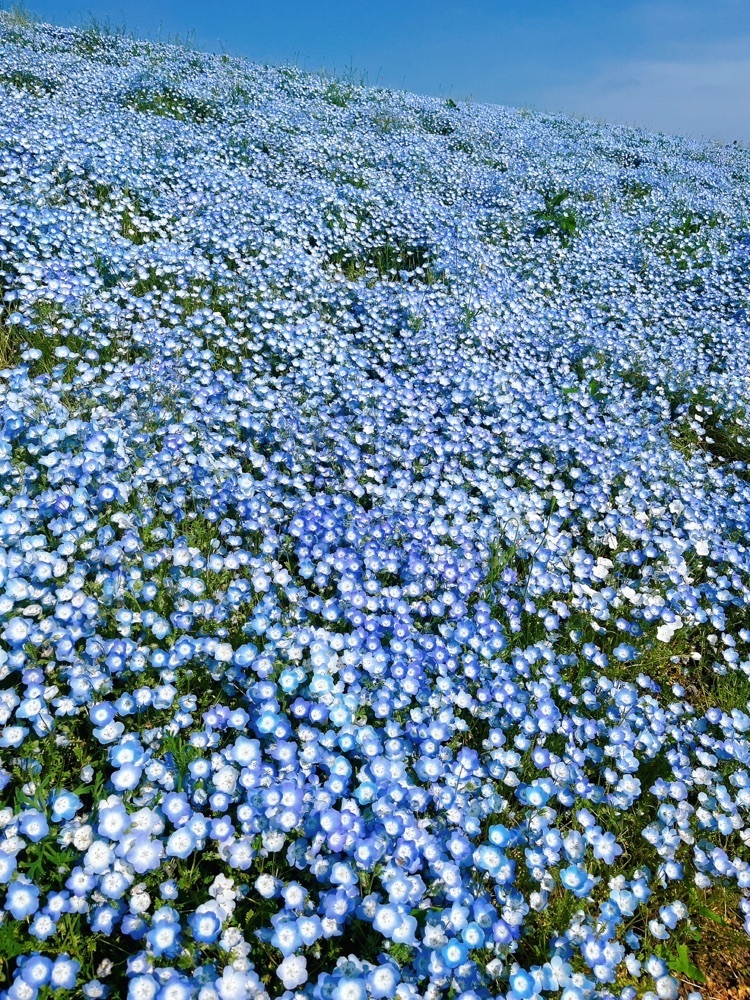 約4.2ヘクタールあるというネモフィラ畑の「みはらしの丘」は見物客の列が連なり、私もその中に混じって撮影をして参りましたꕤ𓈒𓂂◌