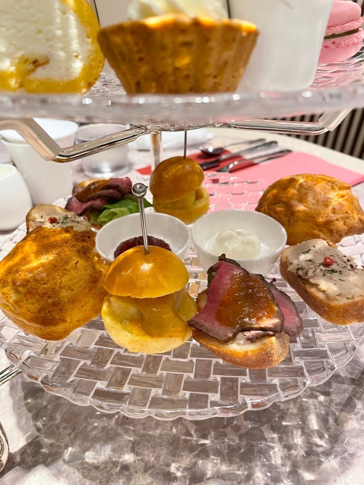 可愛らしいマカロンやマンゴーのサンドイッチ、
