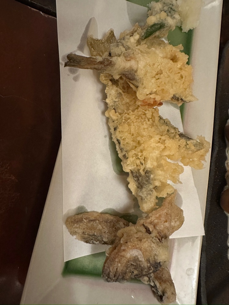 日内地鶏の塩焼きやハタハタの天ぷら、稲庭うどん、いぶりがっこの燻製チーズと色々な料理があり、とても美味しかったです。
