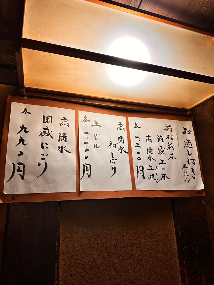 こちらは3ヶ月ほど前の写真で、二人の若い方が割烹着姿でコノ字カウンターの中でお酒を出して下さいました。飲み友は初めてで雰囲気に感動していました😄