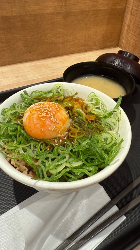 注文して3分ほどでネギたっぷり旨辛ネギたま牛めしが提供されました。