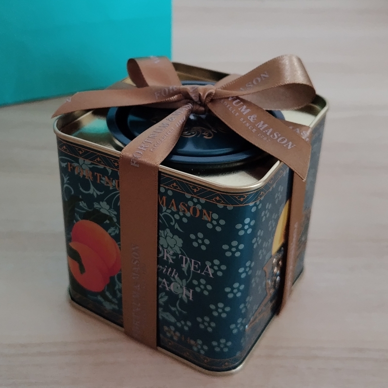 フォートナム&メイソンのフレーバーティー。ギフトはゴールドかグリーンのリボンどちらかを選べて結んでもらえました。大きい壺から出してもらえる紅茶の量り売りもいつか購入してみたいものです。ショップバッグも素敵でした。