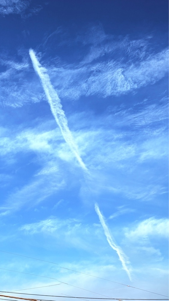 今は、もう飛行機雲は、他の雲に吸収されてしまいまし