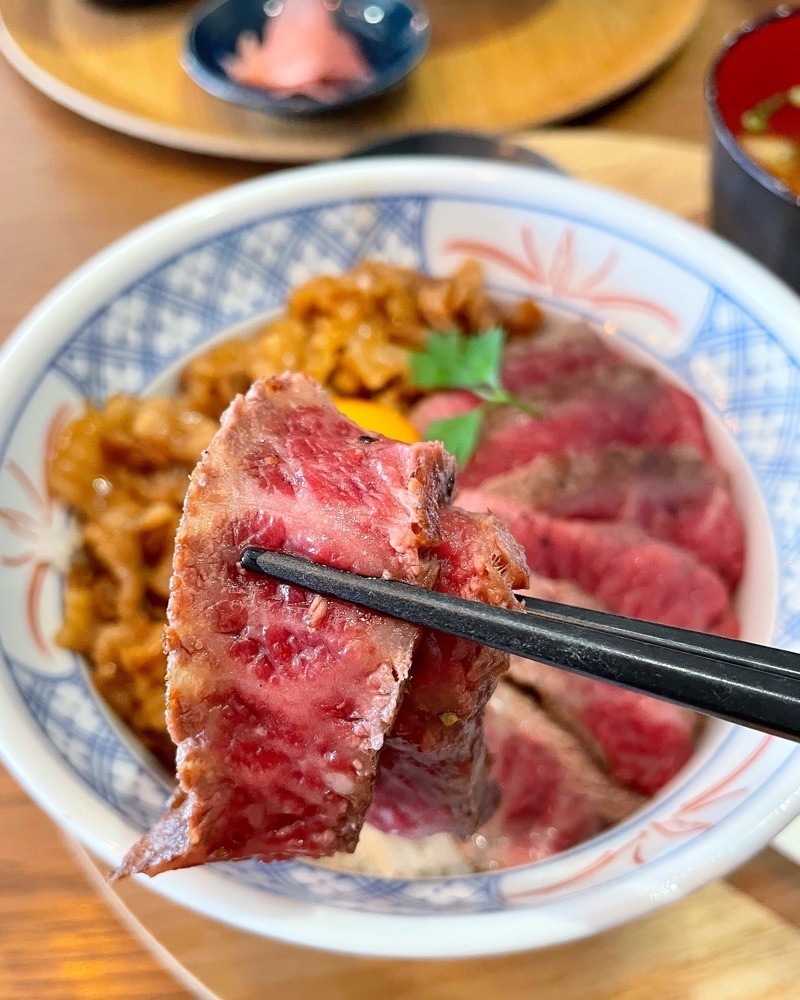 ランチ限定のノダニク丼は3種のお肉の部位を一度に楽しめる贅沢丼😋🍖