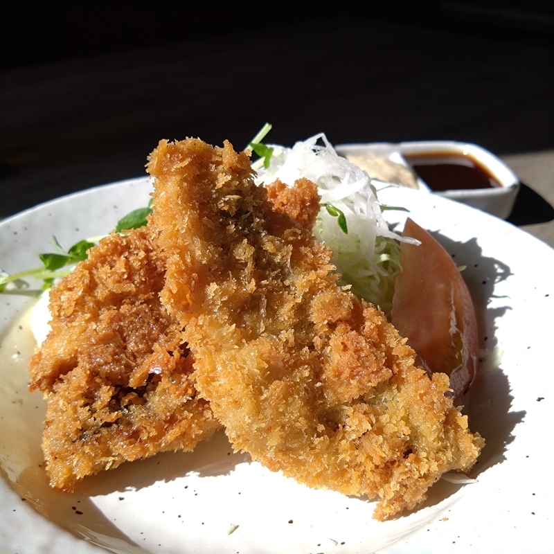 真ほっけのフライは揚げ具合が絶妙で肉厚のほっけが柔らかく、噛むとジュワっと旨味たっぷりの脂が。店主特製のタルタルとソースをつけて食べるとほっけ、ビール、ほっけ、ビールのループでビールがすすみます。