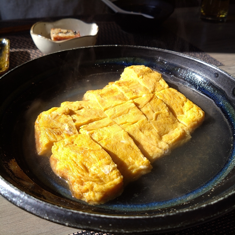 だし巻き玉子のだし浸しは名前のとおり丁寧に取られた出汁に美味い出汁巻きが浸っています。この出汁がまた美味しいこと。この出汁だけでも酒が飲めそう。