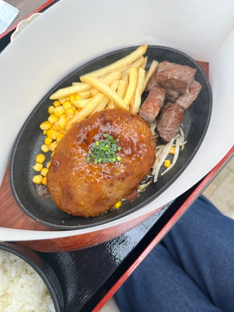 僕は👉ハンバーグ150gにももとハラミ(各50g)
