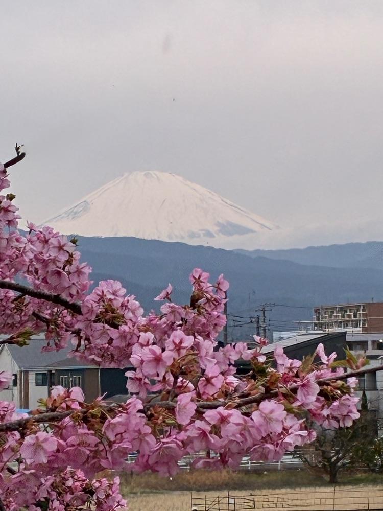 散歩🚶♀️ パート1春爛漫、我が家から近い河川敷を歩きます🚶♀️この日は、青空はなくとも汗ばむ陽気、霞む富士山🗻今は何処もピンクとイエローまみれ…🤭
