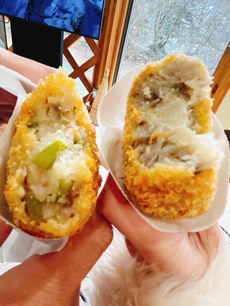アスパラがゴロゴロ入ったコロッケも、ねっとり里芋と牛肉入りのコロッケもどちらもそれぞれオススメです♩👍🏻