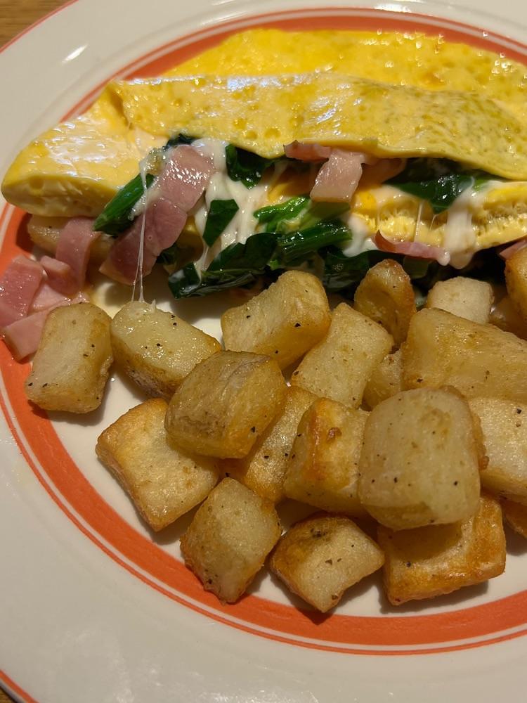 ほうれん草とベーコンとチーズオムレツ🧀🤍